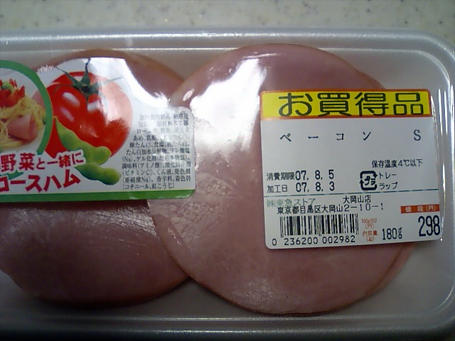 とりあえず、ハムとベーコンの値段が同じかどうか確認しようとしたら、店員がマチガイに気がついたようで撤去されてました。